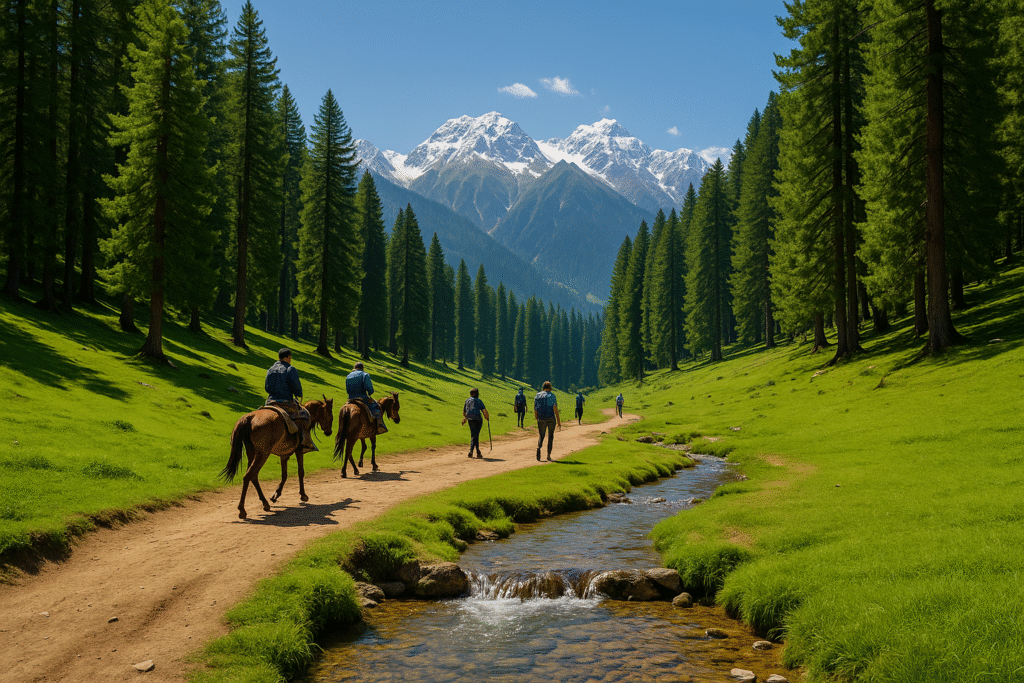 Getting to Baisaran from Pahalgam is part of the adventure! It’s about 5 kilometers away and can be reached through multiple fun and scenic routes:
